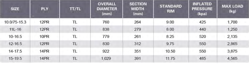 6.Tread contact patch with broader lugs for heavy duty prime-movers.