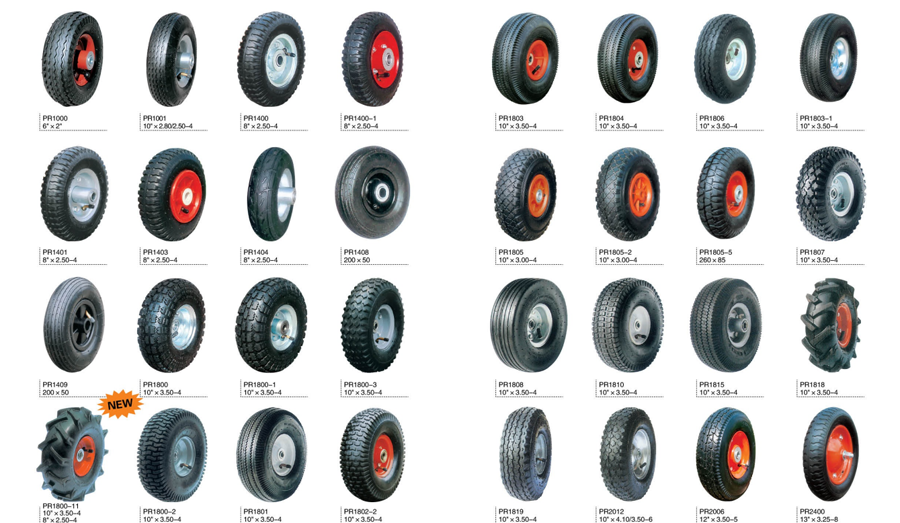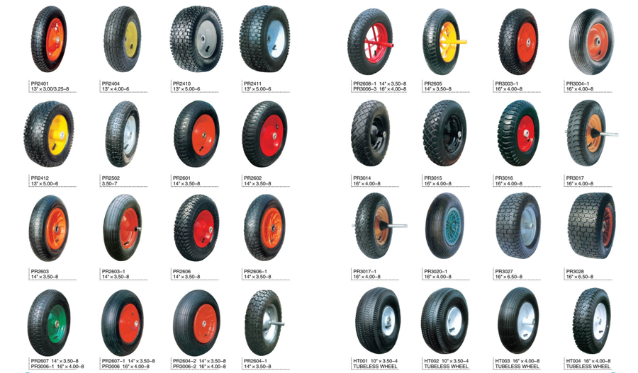 Tube type wheel :5"×1.5",6"×2",8"×2.50-4,8"×2.50-4,200×50,9"×3.50-4,10"×3.50-4,10"×4.10-4,10"×3.00-4,10"×3.50-4,11"×4.00-4,12"×3.50-5,12"×3.50-6,13"×3.25-8,13"×3.00/3.25-8,13"×4.00-6,13"×5.00-6,13"×6.50-6,14"×3.50-8,15"×6.00-6,16"×4.00-7,16"×4.00-8,16"×4.50-8,16"×4.80-8,16"×6.50-8,16"×7.50-8,18"×8.50-8,20"×2.125"