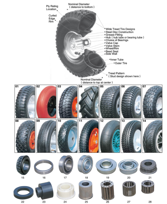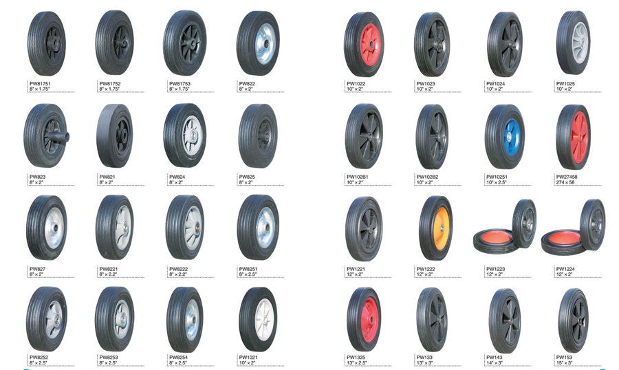 SOLID WHEEL :4"×0.5",6"×1.2", 6"×1.5",6"×2",6"×3",7"×1.3",7"×1.5",7"×1.75",8"×1.75",8"×2",8"×2.2",10"×1.75",10"×3",10"×1.75",10"×2.5",10"×2.75",250×85,13"×3.00-8,14"×3.5",16"×4.00-9